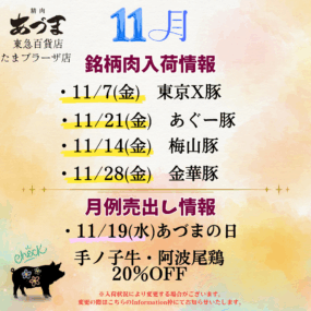 11月の銘柄肉の入荷スケジュールと、月例売出しの情報をお知らせいたします。