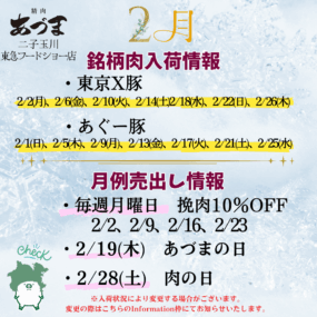 2月の銘柄肉の入荷スケジュールと、月例売出しの情報をお知らせいたします。